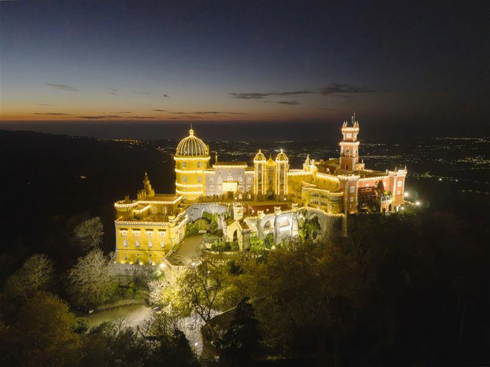 В декабре парк вокруг дворца Пена открывается для вечерних прогулок в рамках мероприятия «Волшебная ночь в Парке Пена». Это редкая возможность увидеть один из самых известных символов Синтры после захода солнца — в особом, праздничном освещении.